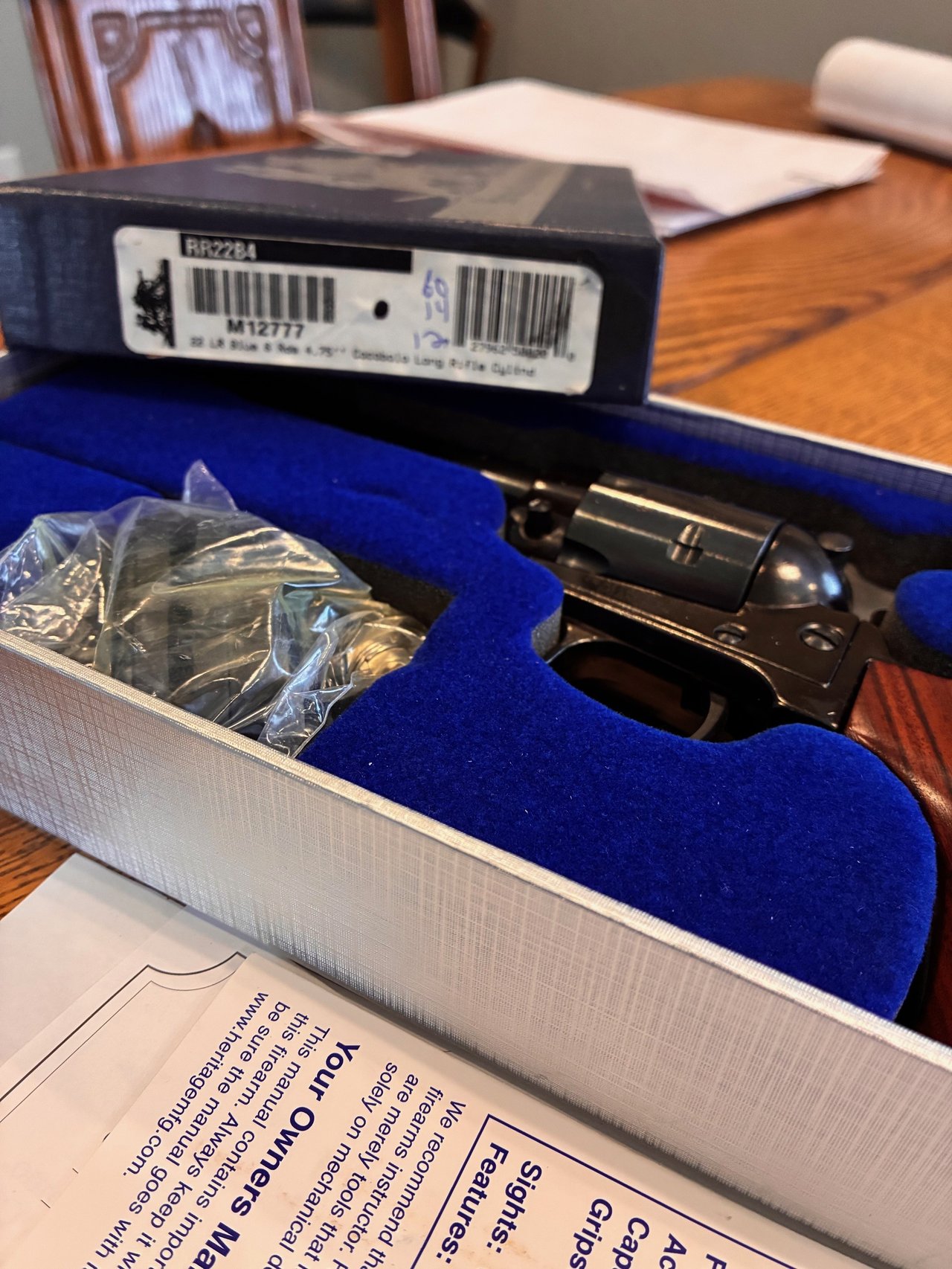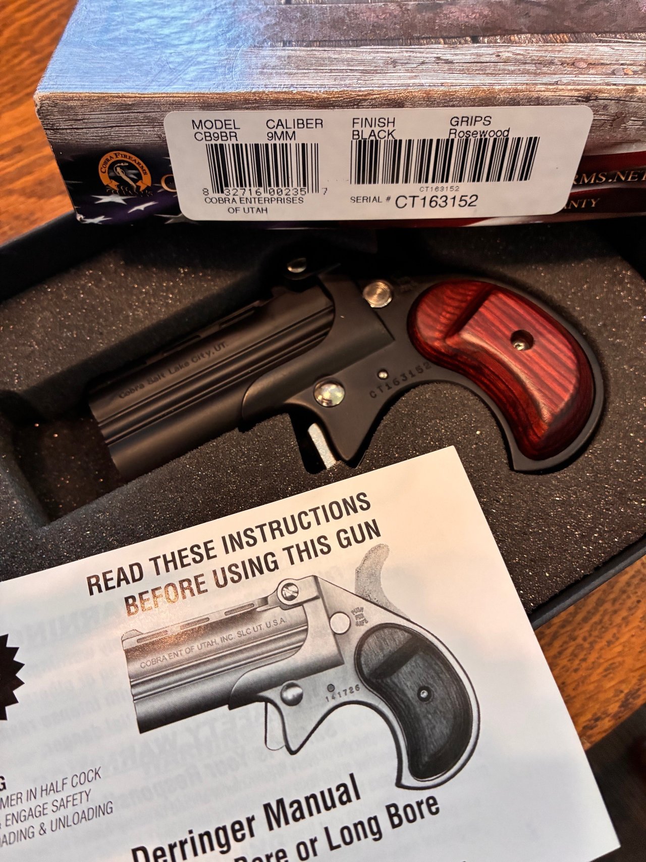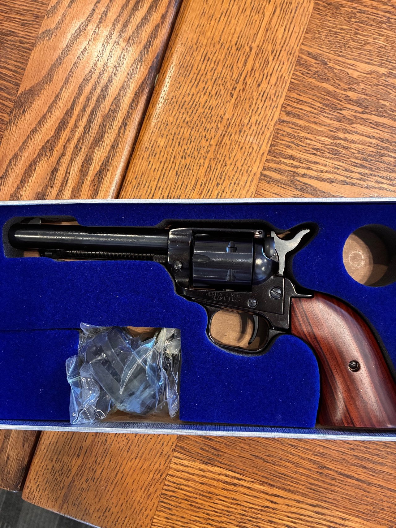 Guns: Derringer Cobra Firearm Model CB9BR 9mm w/Rosewood Grip, Jimenez Arms w/extra magazine Model JA NINE 9mm, Heritage Manufacturing Rough Rider Single Action Revolver .22LR and .22 Mag, Cobray FMJ Pistol Model D 410 Derringer 45 Cal, Buntline long rifle .22 pistol, British .303 high powered rifle/scope.